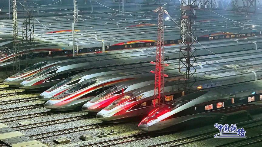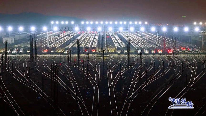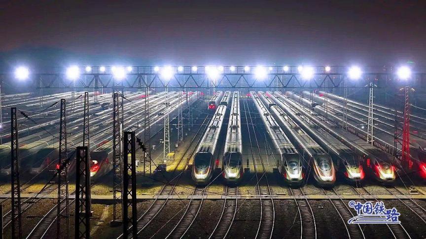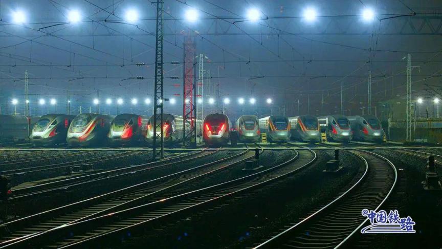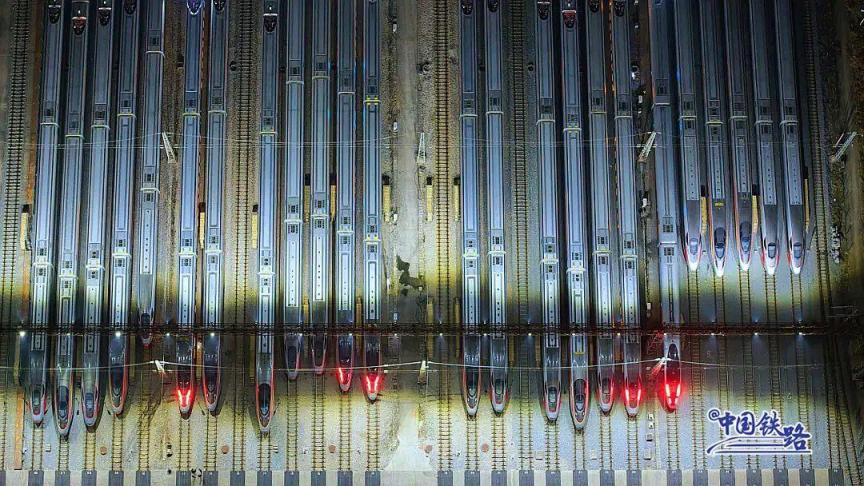 1月13日凌晨,存车线上灯火通后。这里进行普通维修和追究的动车组列车,会在京广高铁、沪昆高铁、衡柳铁路、娄邵铁路、张吉怀高铁等透露上运营。