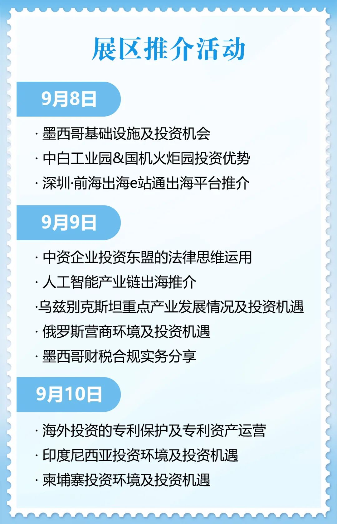 出海管事专区邀请场所国外详细管事平台、律所等专科管事机构,以及重心国别境外中资企业商(协)会等参展,举办对外投资法律风险防控、合规计算等专科宣讲,搭建对接和雷同平台。